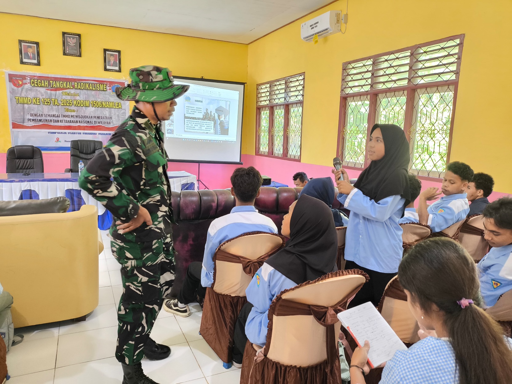Letda Inf Jufri Sanrah Henaulu, Pasiter Kodim 1506/Namlea, memberikan materi tentang cegah tangkal radikalisme. Menurutnya, memberikan materi cegah tangkal radikalisme ke generasi muda sangat penting karena mereka adalah calon pemimpin masa depan yang akan membawa Indonesia menjadi lebih maju dan sejahtera. “Generasi muda harus dibekali dengan pengetahuan dan kesadaran tentang bahaya radikalisme, sehingga mereka dapat menjadi garda terdepan dalam mencegah dan menangkal radikalisme,” ujarnya.