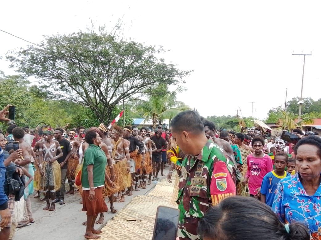 Timika, suaraindo24.com – Bertempat di Gereja Katolik Santa Maria Magdalena Pomako, Distrik Mimika Timur, Kab. Mimika, Babinsa Koramil 1710-07/Mapurujaya Sertu Yulius Nampe bersama Bhabinkamtibmas setempat menghadiri sekaligus mengamankan kedatangan Bapa Uskup Timika Mgr. Pater Bernardus Bofitwos Baru, OSA, Minggu (20/07/2025).