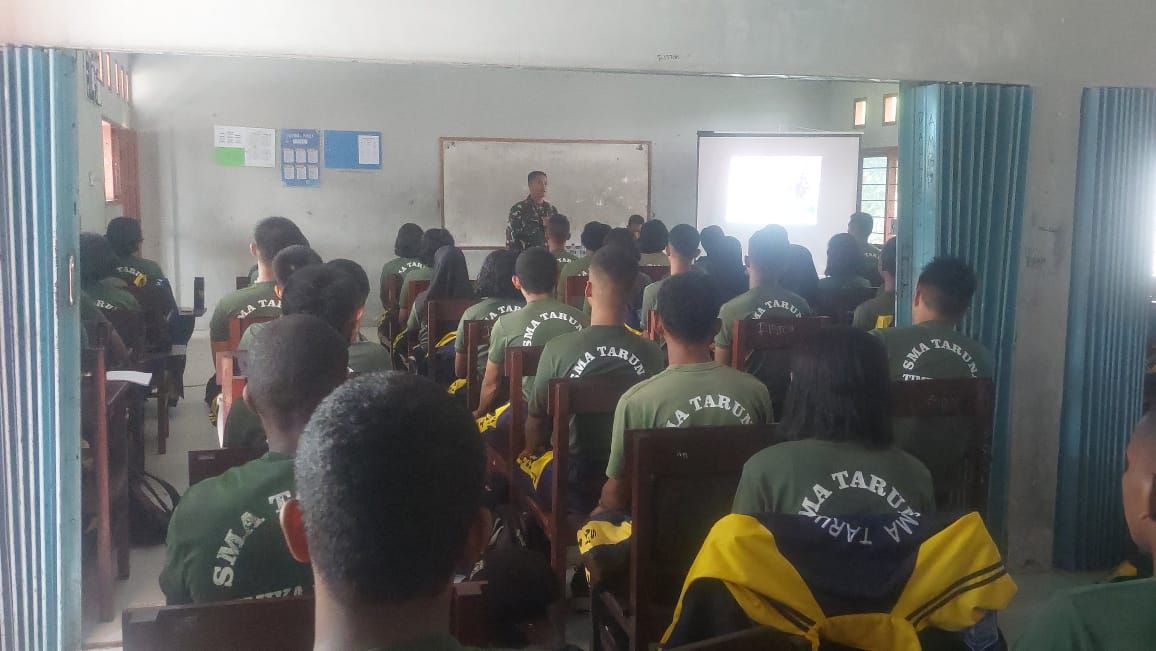 Timika, suaraindo24.com – Danramil 1710-02/Timika Kapten Inf Helly Sukmajaya, memberikan sosialisasi terkait penerimaan calon prajurit TNI Angkatan Darat (AD) kepada siswa-siswi SMA Taruna Timika. Kegiatan sosialisasi digelar di Aula Sekolah SMA Taruna Timika, Distrik Wania, Kabupaten Mimika, Sabtu (25/01/2025).