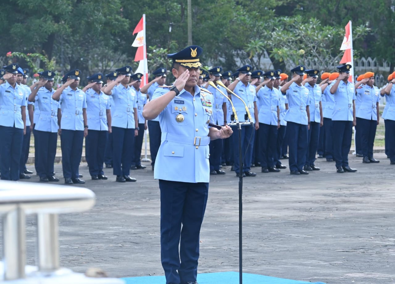 Makassar – Komandan Lanud Sultan Hasanuddin Marsma TNI Arifaini Nur Dwiyanto, M.Han., pimpin upacara ziarah dalam rangka Peringatan Ke-78 Hari Bakti TNI Angkatan Udara, di Taman Makam Pahlawan (TMP) Panaikang, Makassar, Senin (28/7/2025).