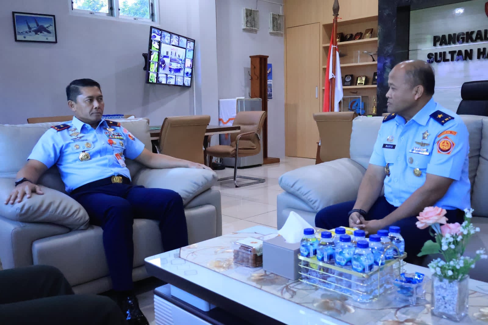 Makassar – Komandan Lanud (Danlanud) Sultan Hasanuddin, Marsma TNI Arifaini Nur Dwiyanto, M.Han., menerima kunjungan Kepala Oditurat Militer Tinggi IV Makassar (Kaotmilti IV Makassar) Marsma TNI Wahyu Priyo Budi, S.H., M.H., didampingi Kepala Pemasyarakatan Militer (Kamasmil IV Makassar) Kolonel Cpm Sony Yusdarmoko, S.H., M.Si. bertempat di Markas Komando (Mako) Lanud Sultan Hasanuddin, Makassar, Kamis (5/6/2025).