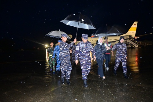 Tiba di Lanud Sultan Hasanuddin, Kasal disambut sejumlah pejabat tinggi TNI Polri dan pejabat penting di lingkup Provinsi Sulawesi Selatan, diantaranya Pangkoarmada II Laksamana TNI I Gung Putu Alit Jaya, Kabaharkam Polri Komjen Pol. Dr. H. Mohammad Fadil Imran, M.Si., Pangdam XIV/Hasanuddin Mayjen TNI Windiyatno, Kapolda Sulawesi Selatan Irjen Pol. Drs Rusdi Hartono M.Si., Aspotmar Kasal Mayjen TNI (Mar) Hermanto, Kadispotmaral Brigjen TNI (Mar) Sugianto, Kaskoops Udara II Marsma TNI Indan Gilang Buldansyah, S.Sos., Danlantamal VI Makassar Brigjen TNI (Mar) Dr. Wahyudi, S.E., M.Tr.Hanla., M.M., M. Han., Kabinda Sulsel Brigjen TNI Andi Anshar, Walikota Makassar Munafri Arifuddin, Ketua DPRD Sulsel, Drg. Andi Rahmatika Dewi Yustitia Iqbal.