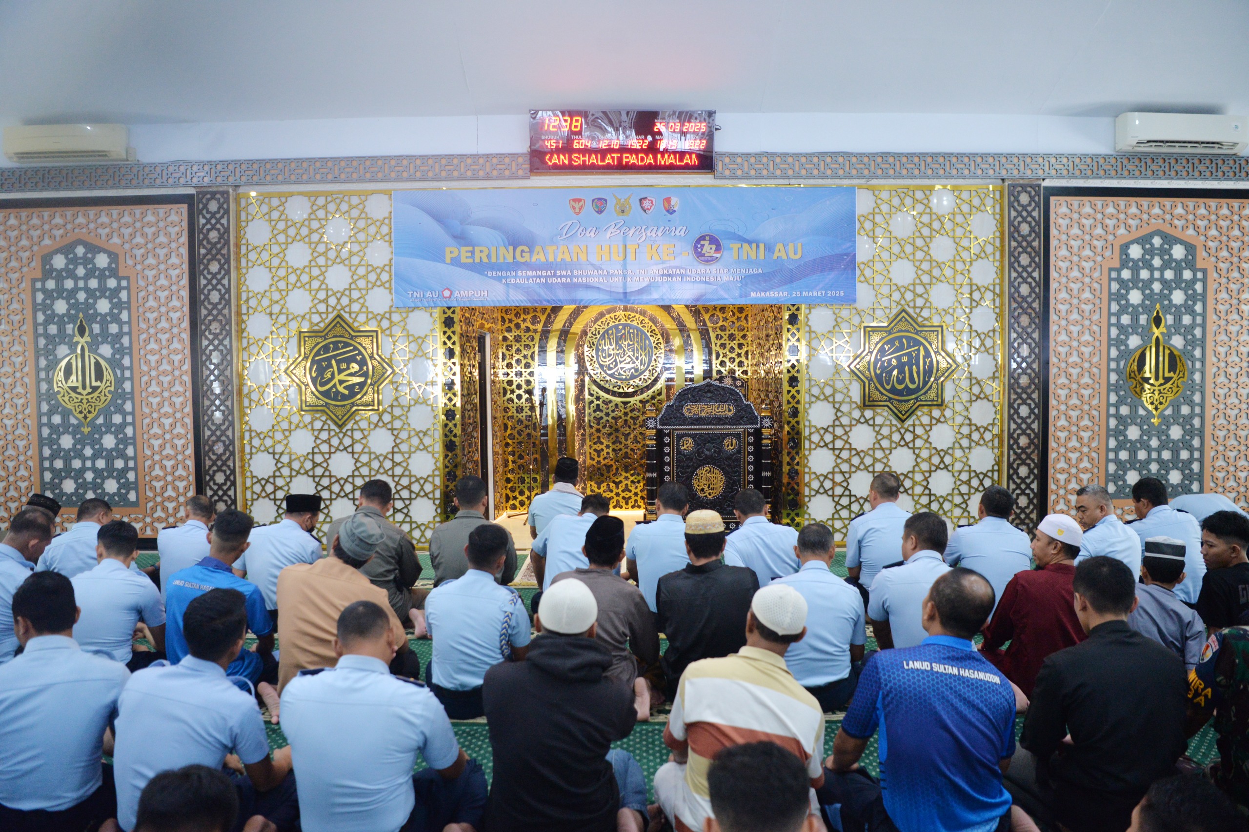 Makassar – Lanud Sultan Hasanuddin menggelar doa bersama dalam rangka peringatan Hari Ulang Tahun (HUT) ke-79 TNI Angkatan Udara yang dilaksanakan dibeberapa tempat ibadah dan  diikuti oleh seluruh personel militer maupun Pegawai Negeri Sipil (PNS) Lanud Sultan Hasanuddin, Makassar, Selasa (25/3/2025).