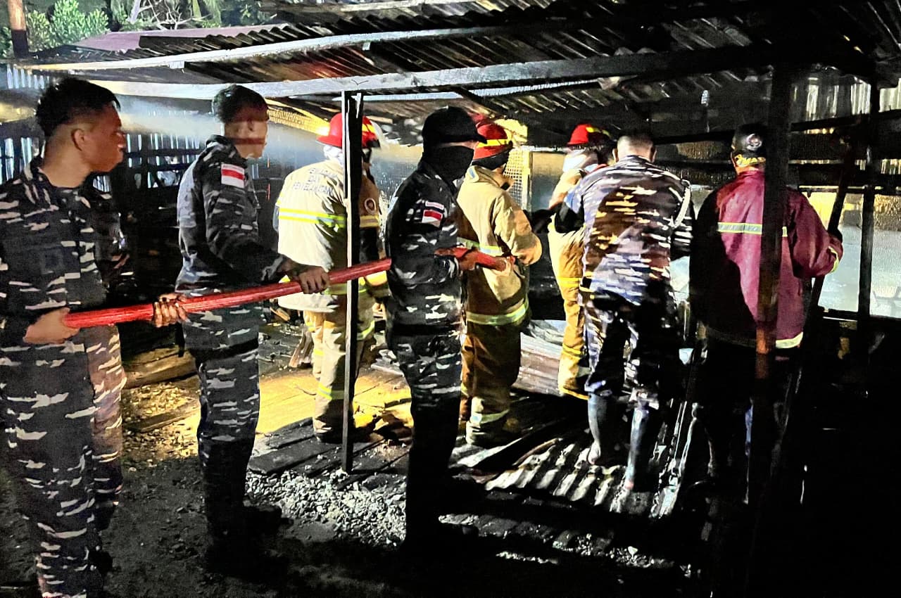 Nunukan – Prajurit Pangkalan TNI Angkatan Laut (Lanal) Nunukan menunjukkan kepedulian dan respons cepat dalam membantu penanganan musibah kebakaran yang terjadi di pemukiman warga di Jl. Ujang Dewa Sedadap Ujung, RT.002 RW.001, Kelurahan Sedadap, Kecamatan Nunukan Selatan, Kabupaten Nunukan, Senin (26/01/2026).