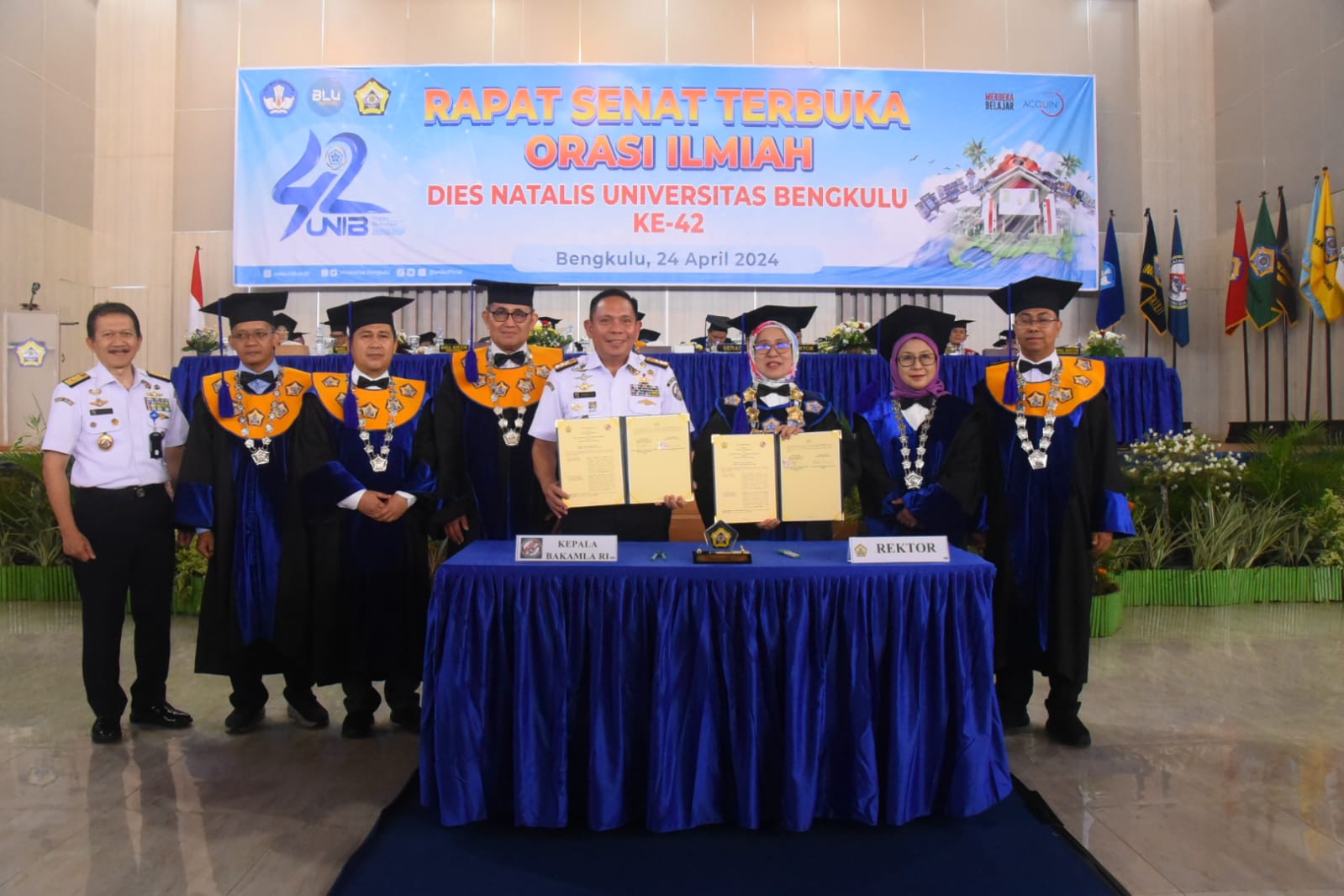 Pada kesempatan itu, Kepala Bakamla RI juga menandatangani Nota Kesepahaman Kerjasama dengan Universitas Bengkulu dalam bidang pendidikan, bidang penelitian, dan bidang pengabdian kepada masyarakat. (Humas Bakamla RI)