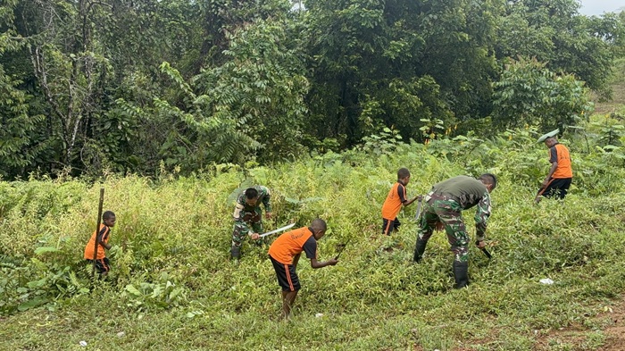 Boven Digoel – Kegiatan karya bakti terpadu digelar oleh Satgas Pamtas RI-PNG Yonif 126/Kalacakti bersama guru dan siswa SD Negeri Persiapan Amupkim sebagai bagian dari upaya membangun lingkungan pendidikan yang layak, bersih, dan mendukung proses belajar-mengajar di wilayah perbatasan.