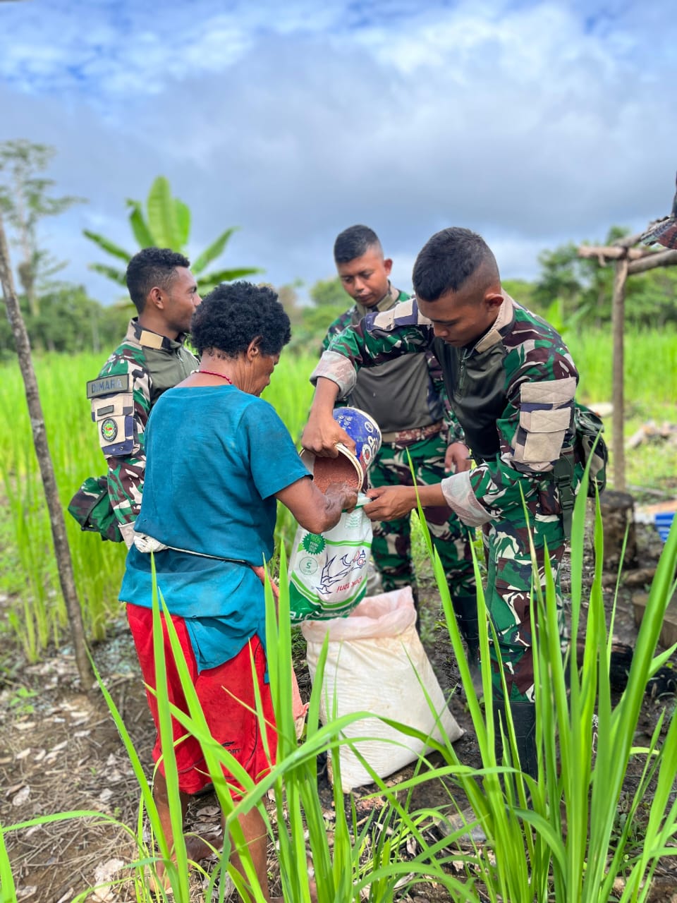 Dalam kegiatan ini, personel Satgas bersama warga bahu-membahu membersihkan area tanaman padi, pemupukan, dan memantau perkembangan padi. Keterlibatan aktif masyarakat menjadi indikator positif bahwa program hanpangan ini disambut antusias dan memberi manfaat nyata bagi kehidupan mereka.