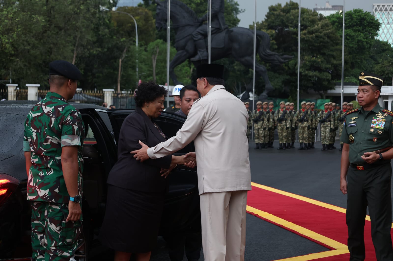 Jakarta – Panglima TNI Jenderal TNI Agus Subiyanto mendampingi Menteri Pertahanan Republik Indonesia (Menhan RI) Sjafrie Sjamsoeddin menerima kunjungan kehormatan Minister of Defence and Military Veterans of the Republic of South Africa, Matsie Angelina Motshekga, di kantor Kementerian Pertahanan, Jakarta, Rabu (22/10/2025).