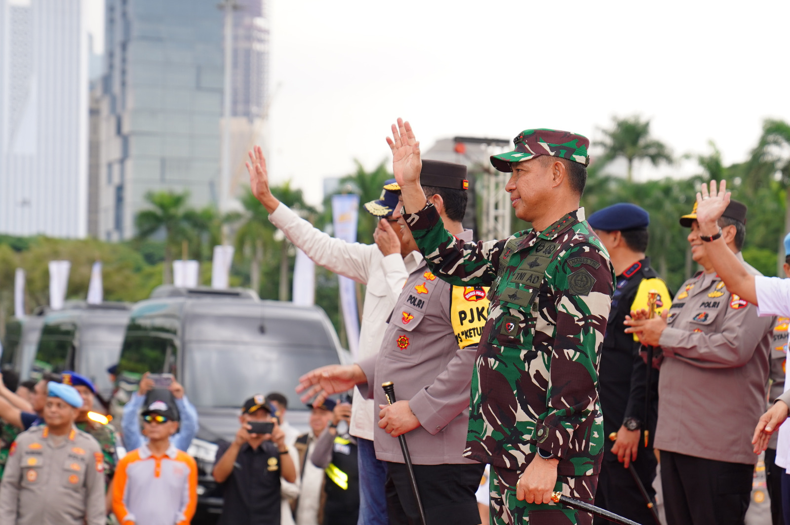 Jakarta – Panglima Tentara Nasional Indonesia Jenderal TNI Agus Subiyanto hadir dalam acara pelepasan Mudik Gratis Polri Presisi 2024 bertempat di Silang Monas pada Sabtu (6/4/2024). Acara ini bertujuan untuk memberikan dukungan bagi masyarakat yang akan melakukan perjalanan mudik menjelang Hari Raya Idul Fitri.