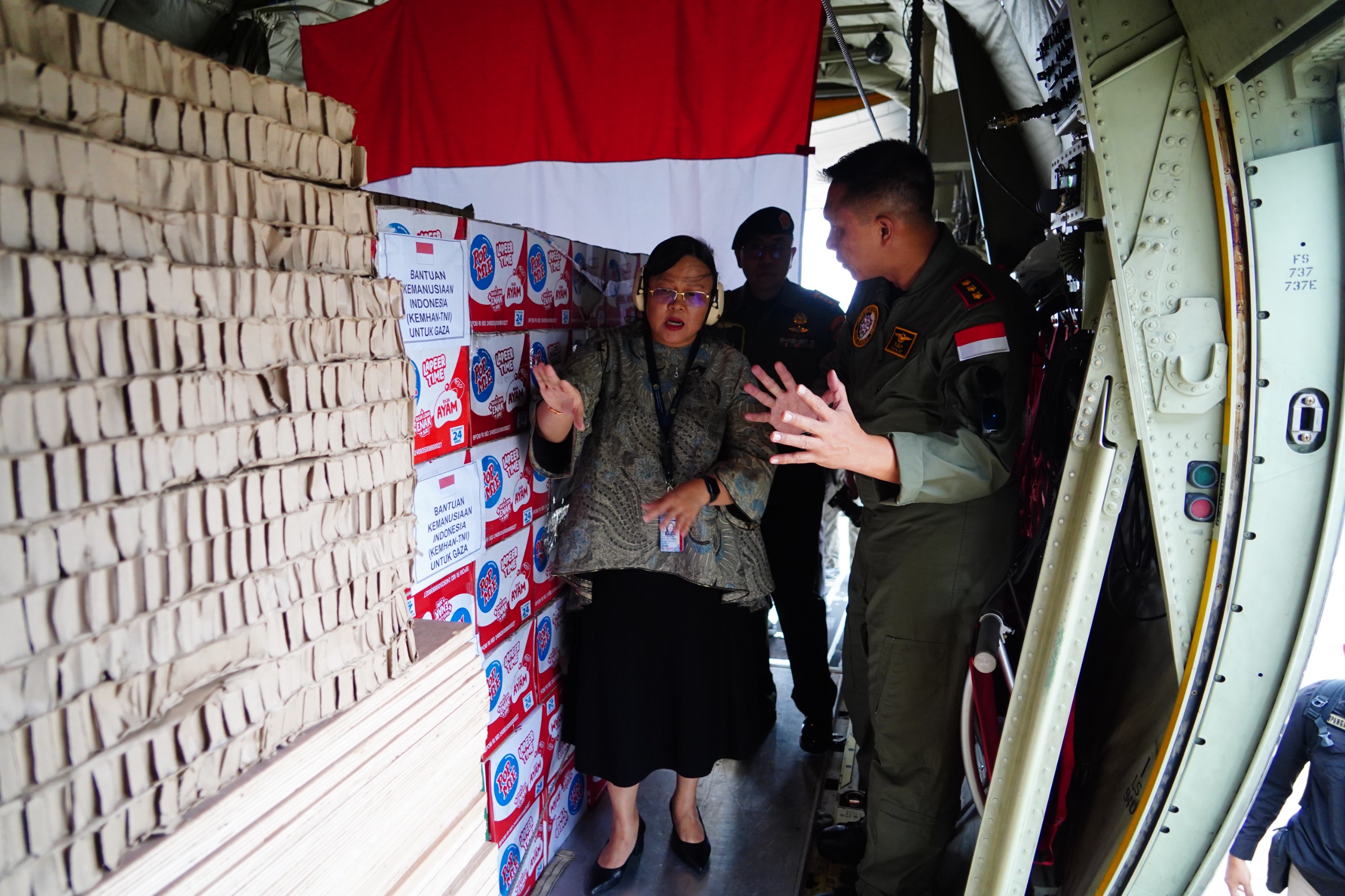 Satuan tugas dengan nama Garuda Merah Putih II yang diperkuat 88 personel terdiri dari kru penerbang dan pendukung teknis, menggunakan 3 pesawat Hercules C-130J TNI AU dari Skadron Udara 31. Operasi bantuan kemanusiaan ini telah mengirimkan logistik sejak 17 Agustus hingga 9 September 2025 melalui airdrop dari pangkalan aju di Yordania dan Mesir dengan total bantuan sebesar 91,4 ton atau sekitar 520 bundel.