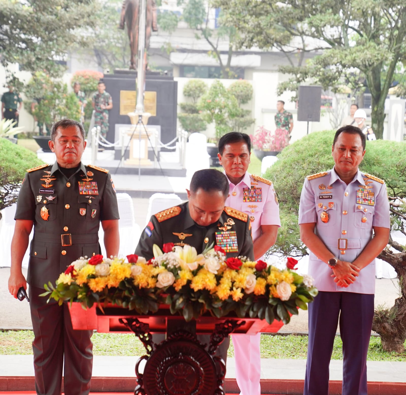 “Dengan mengucapkan Bismillahirrahmanirrahim, pada hari ini Gedung Grha Wiyata Yuddha Seskoad saya nyatakan diresmikan,” ucap Panglima TNI