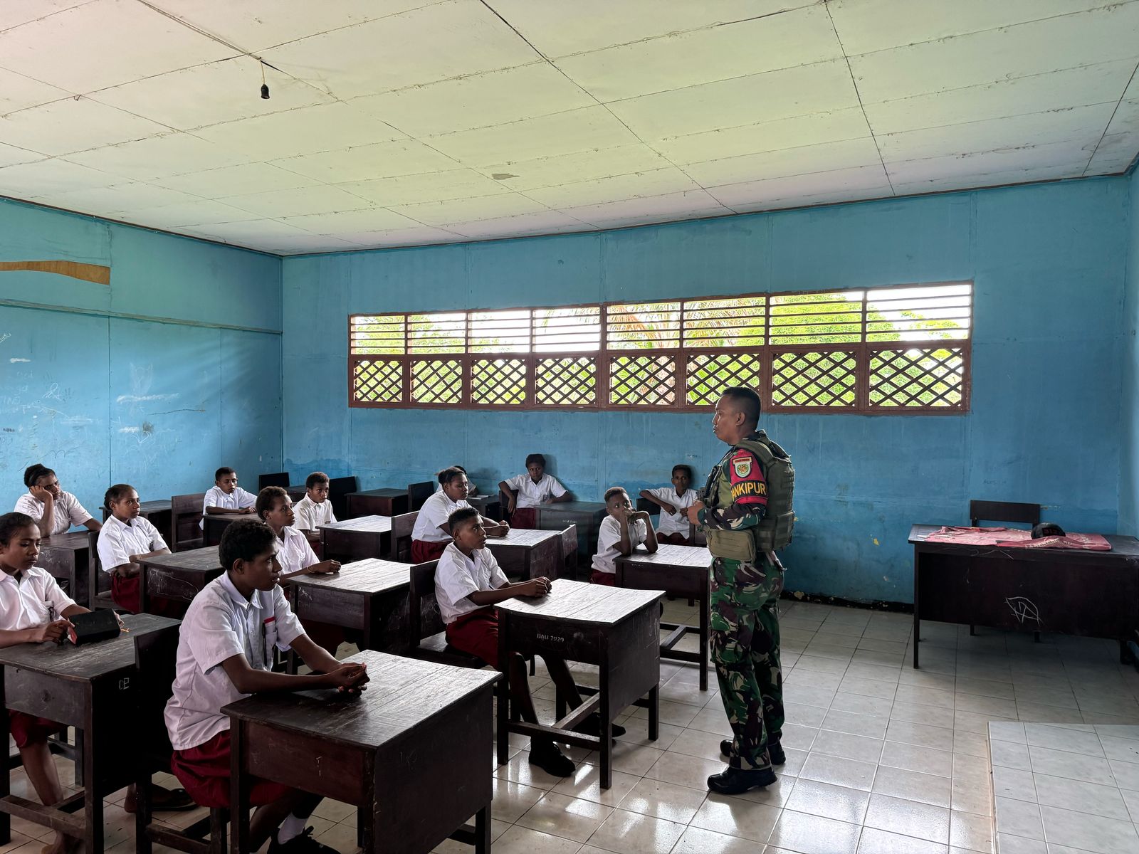 Selain memberikan materi akademik, personel Satgas juga melatih siswa dalam Peraturan Baris-Berbaris (PBB) serta tata cara pelaksanaan upacara bendera guna membentuk disiplin dan karakter kebangsaan sejak dini.